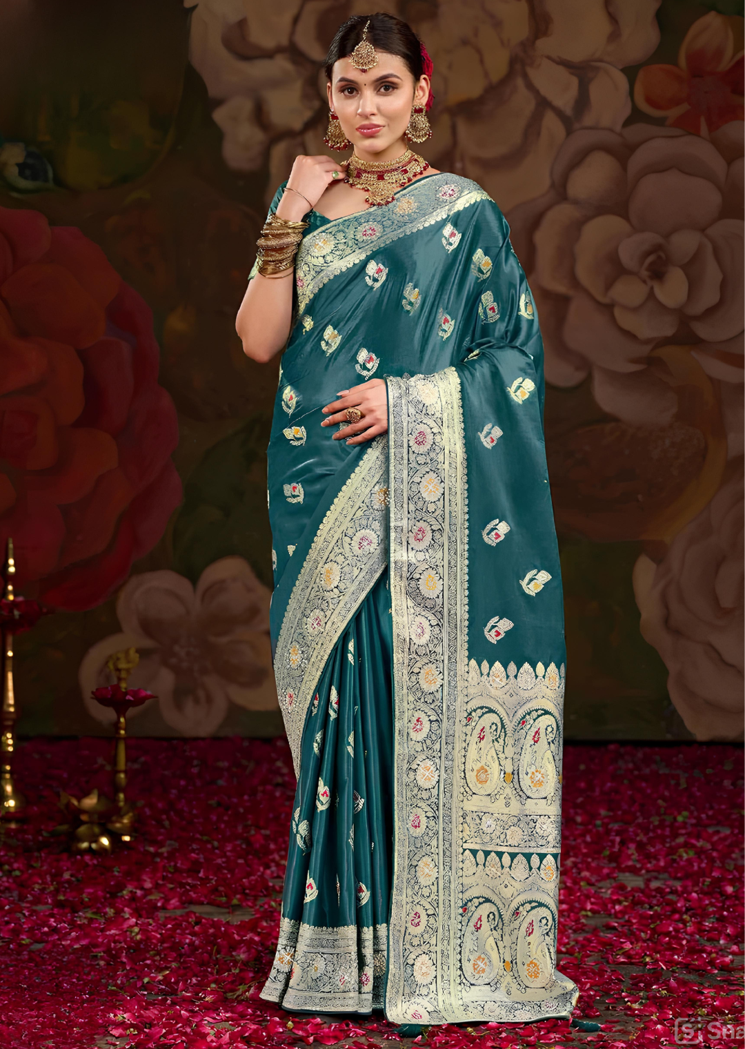 Teal Colour Banarasi Silk SareeTeal Colour Banarasi Silk Saree