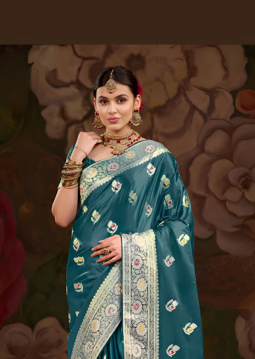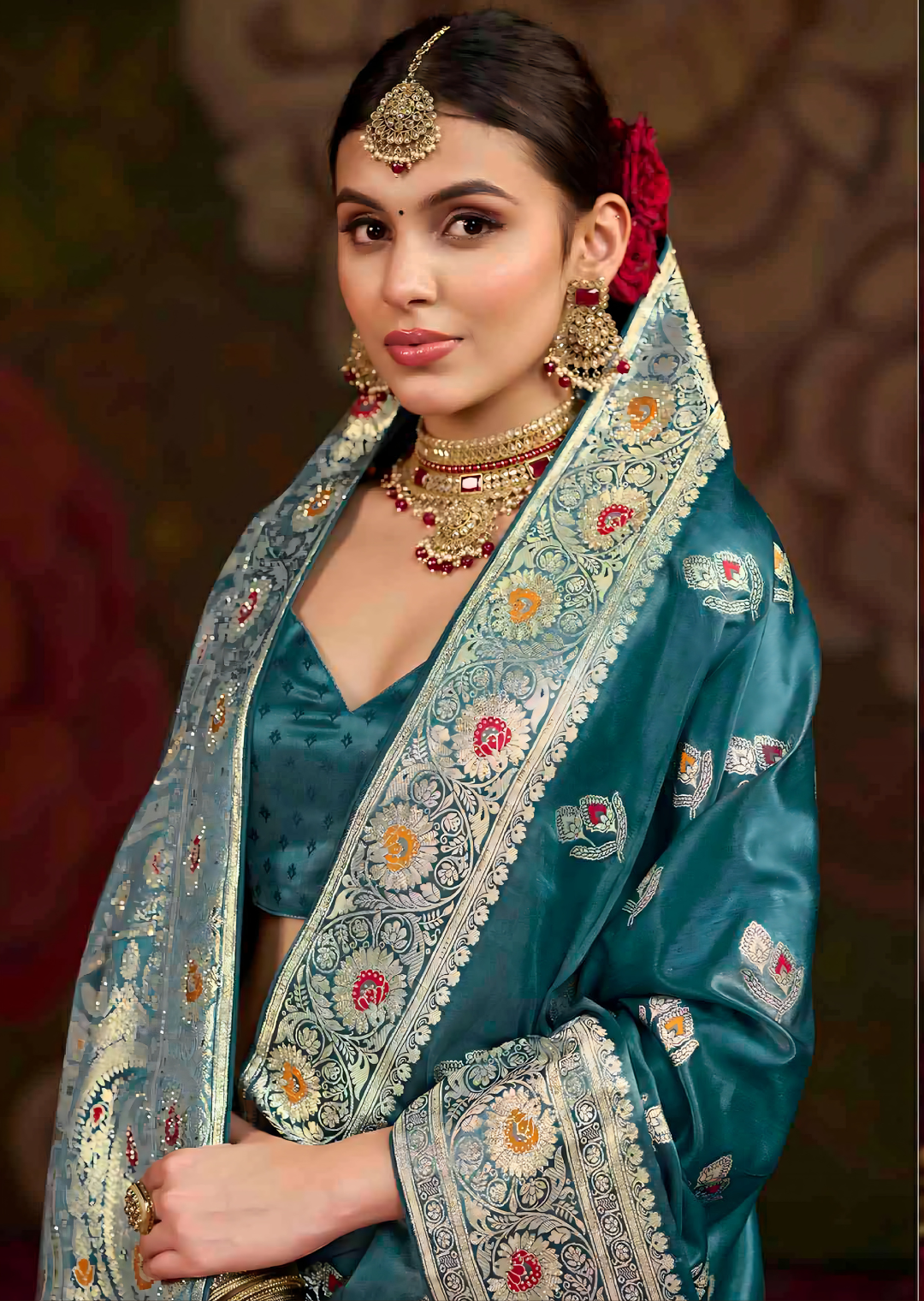 Teal Colour Banarasi Silk Saree